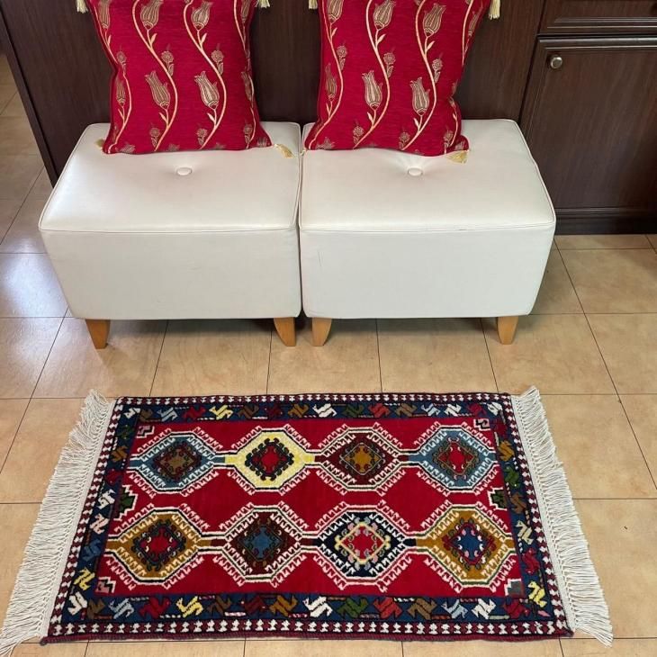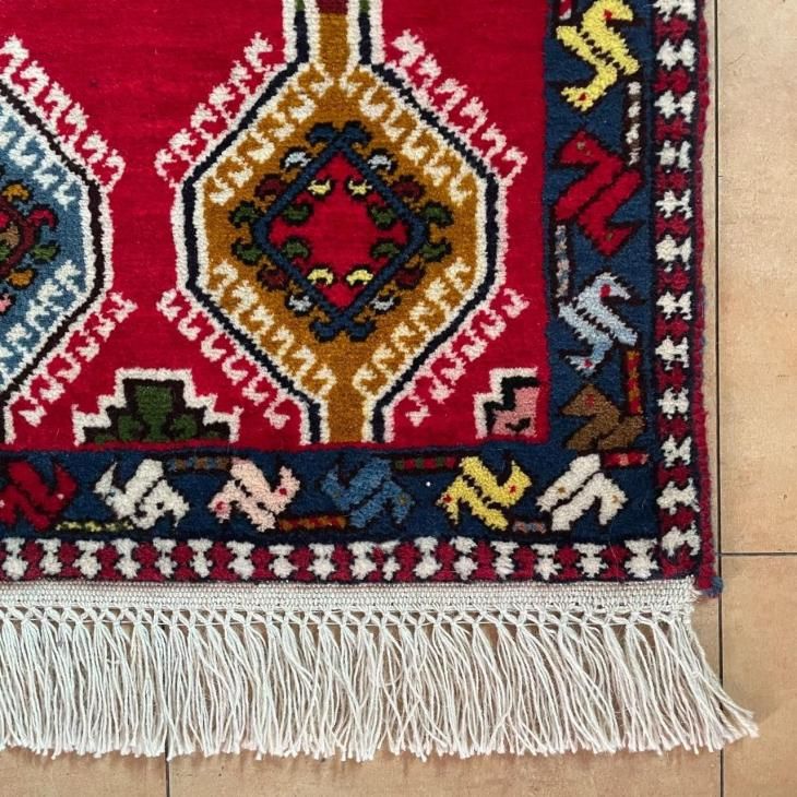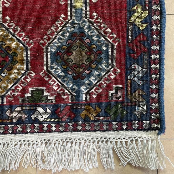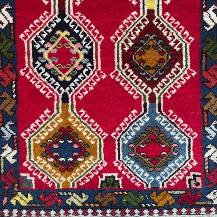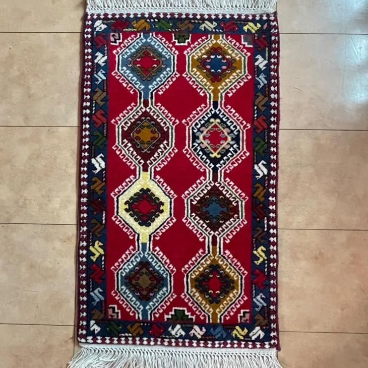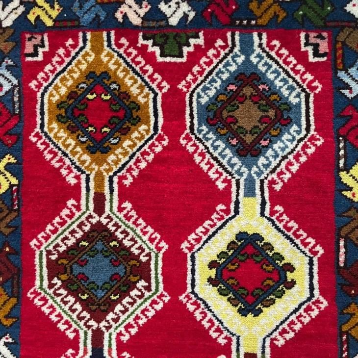ヤラメは数ある産地の中でも、ギャッベやキリムも織られる地域です。そのため編まれるペルシャ絨毯の模様にギャッベやキリムにも通じるダイヤのメダリオンや、幾何学的な模様が描かれています。